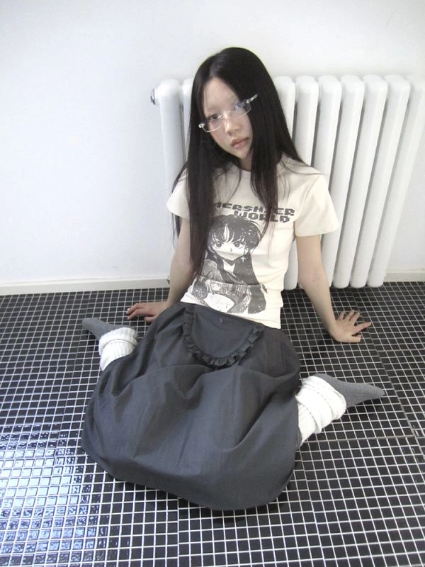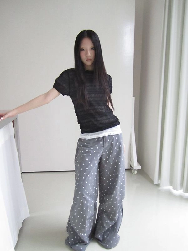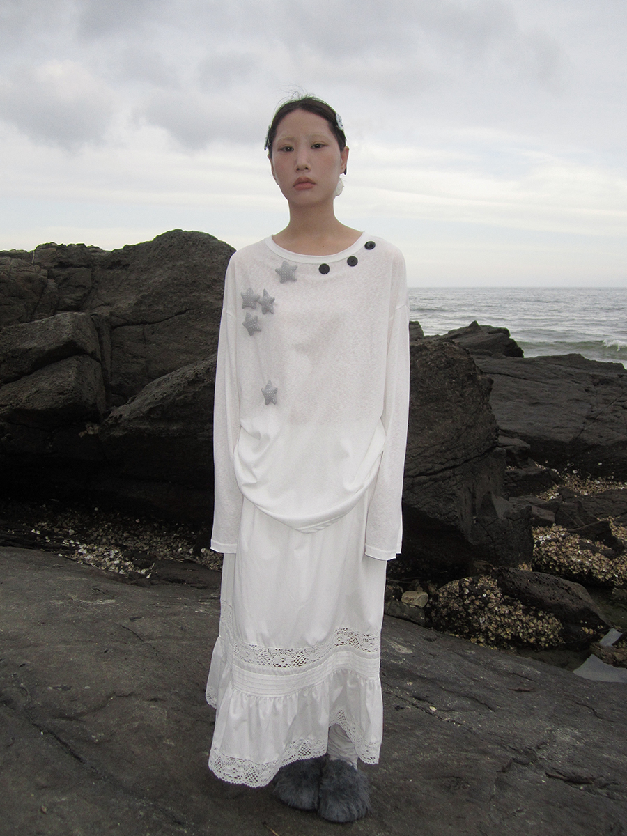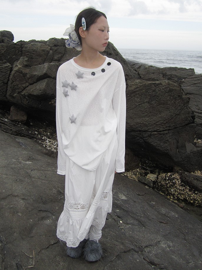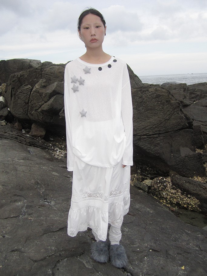 버튼 디테일이 포인트인 시스루 티셔츠입니다.