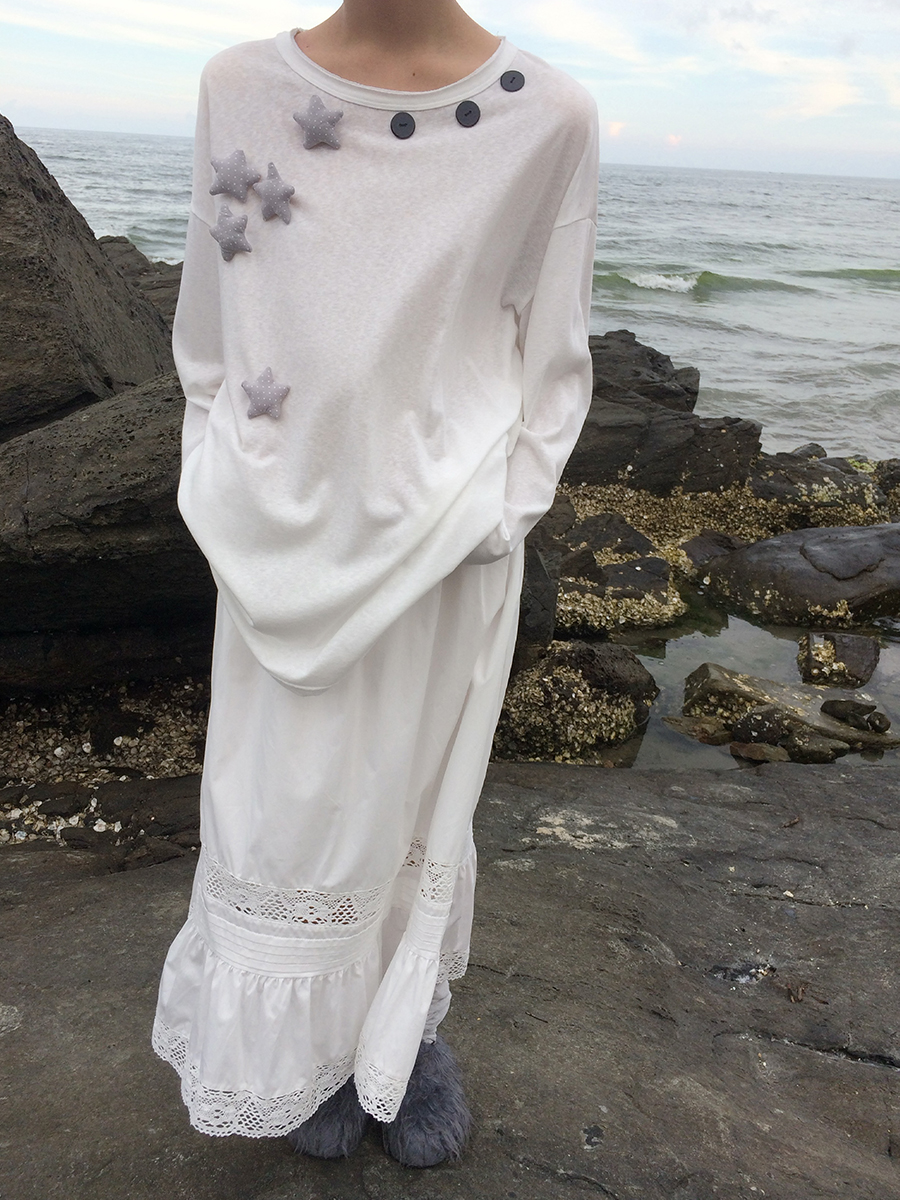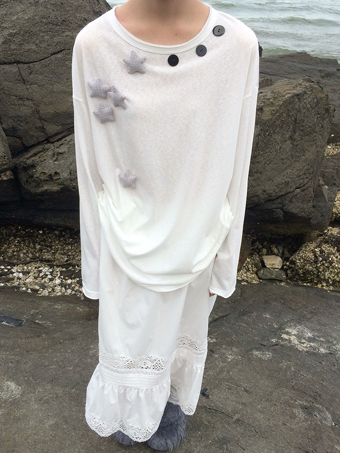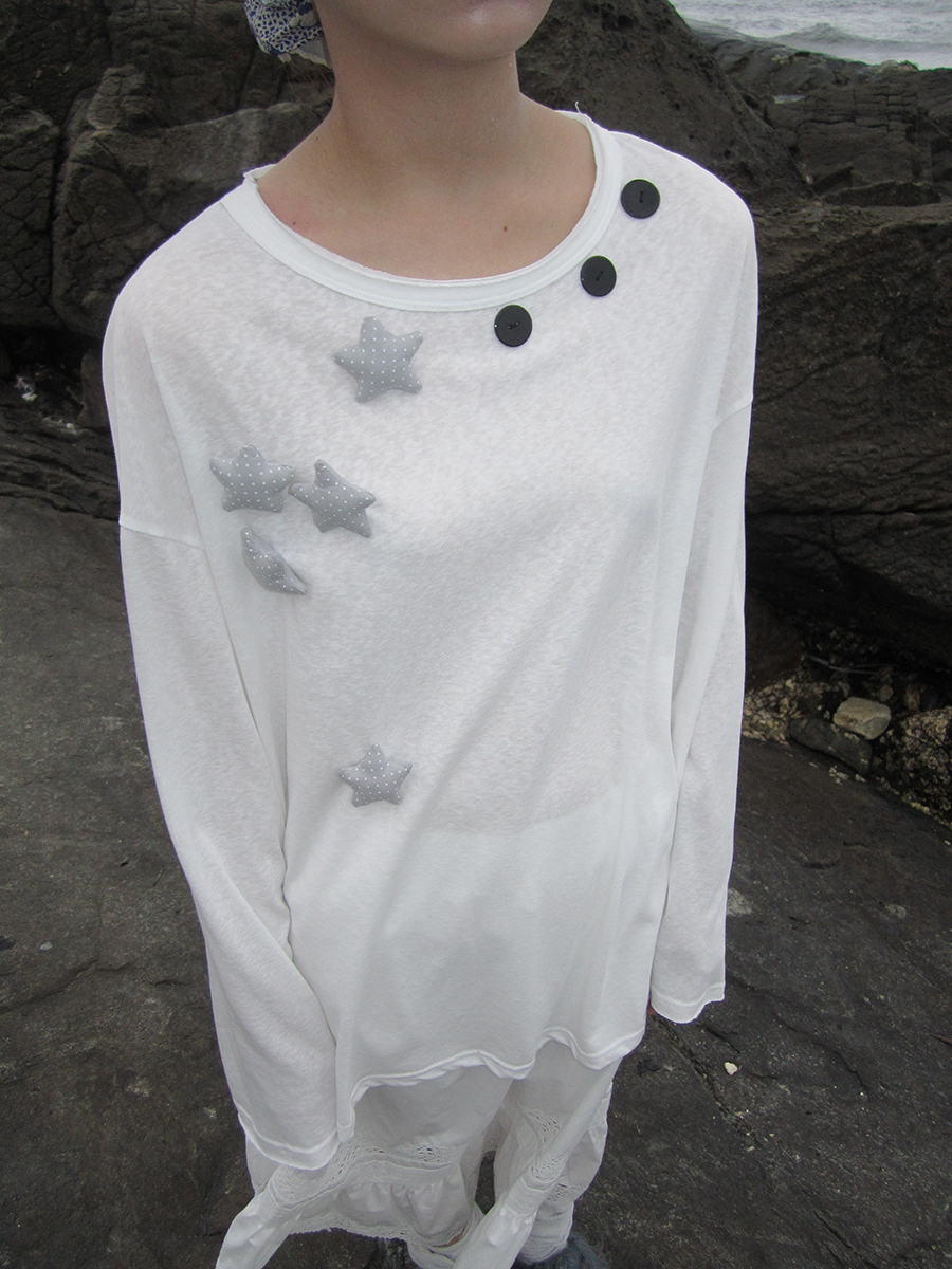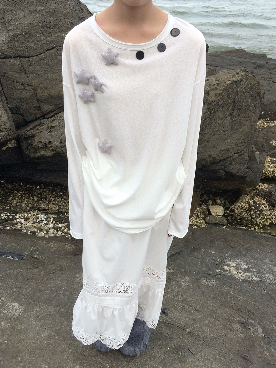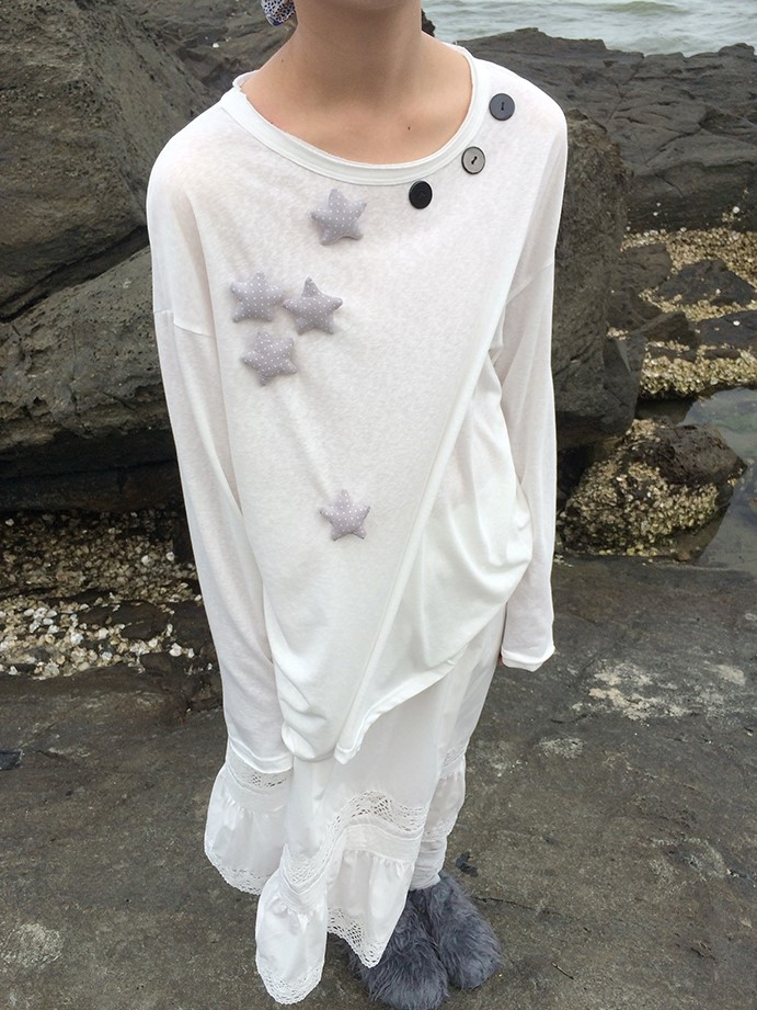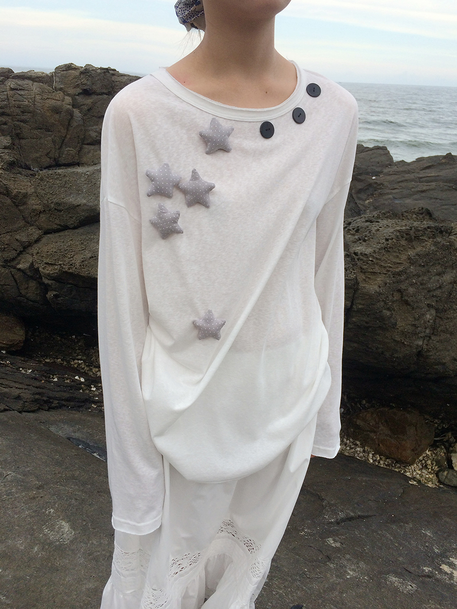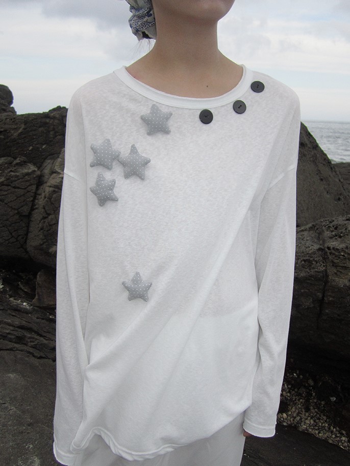 귀여운 별모양 와펜과 넥라인을 따라 들어간