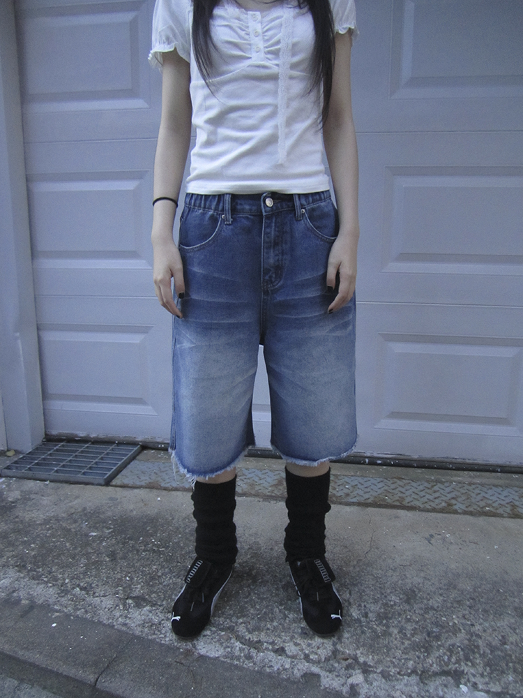 허리 밴딩으로 편하게 입으실 수 있는 데님 팬츠입니다.