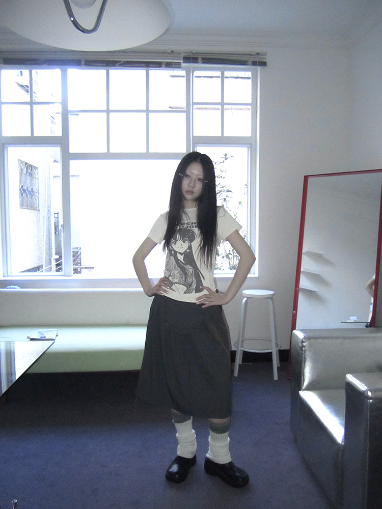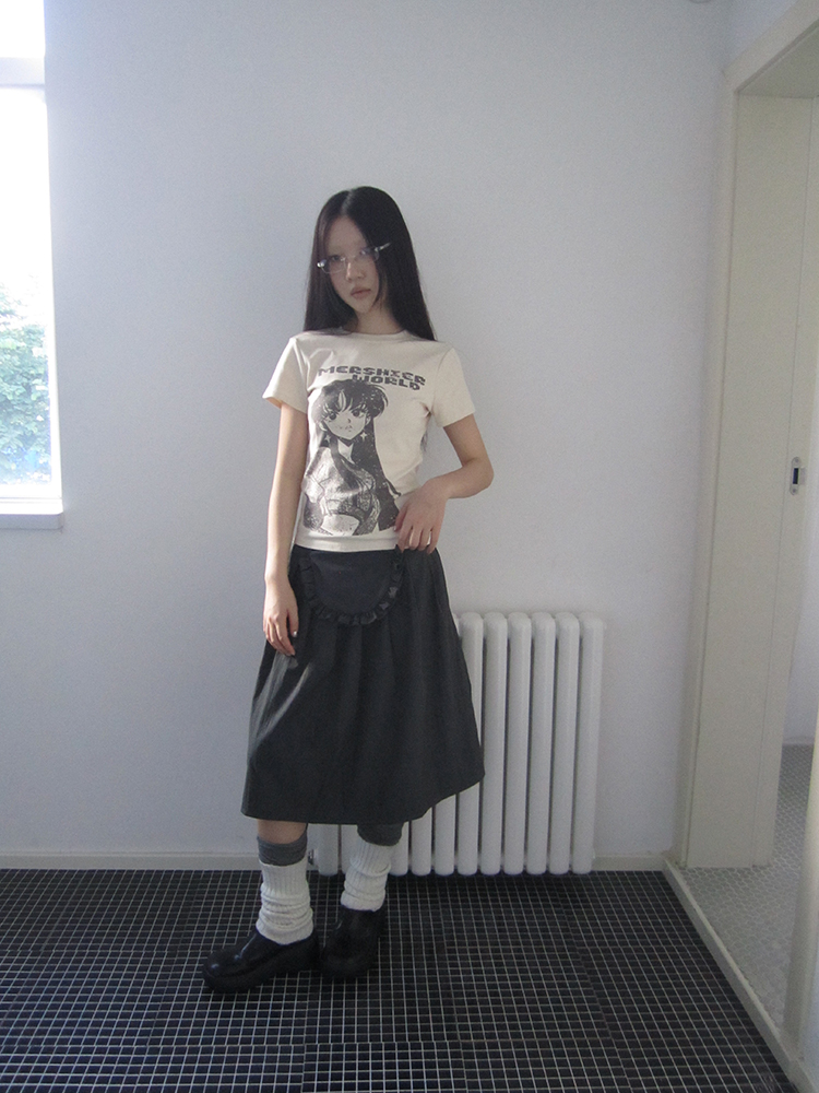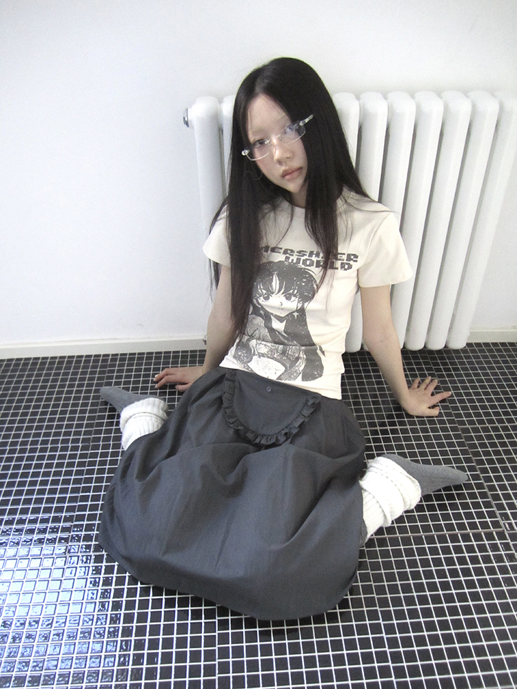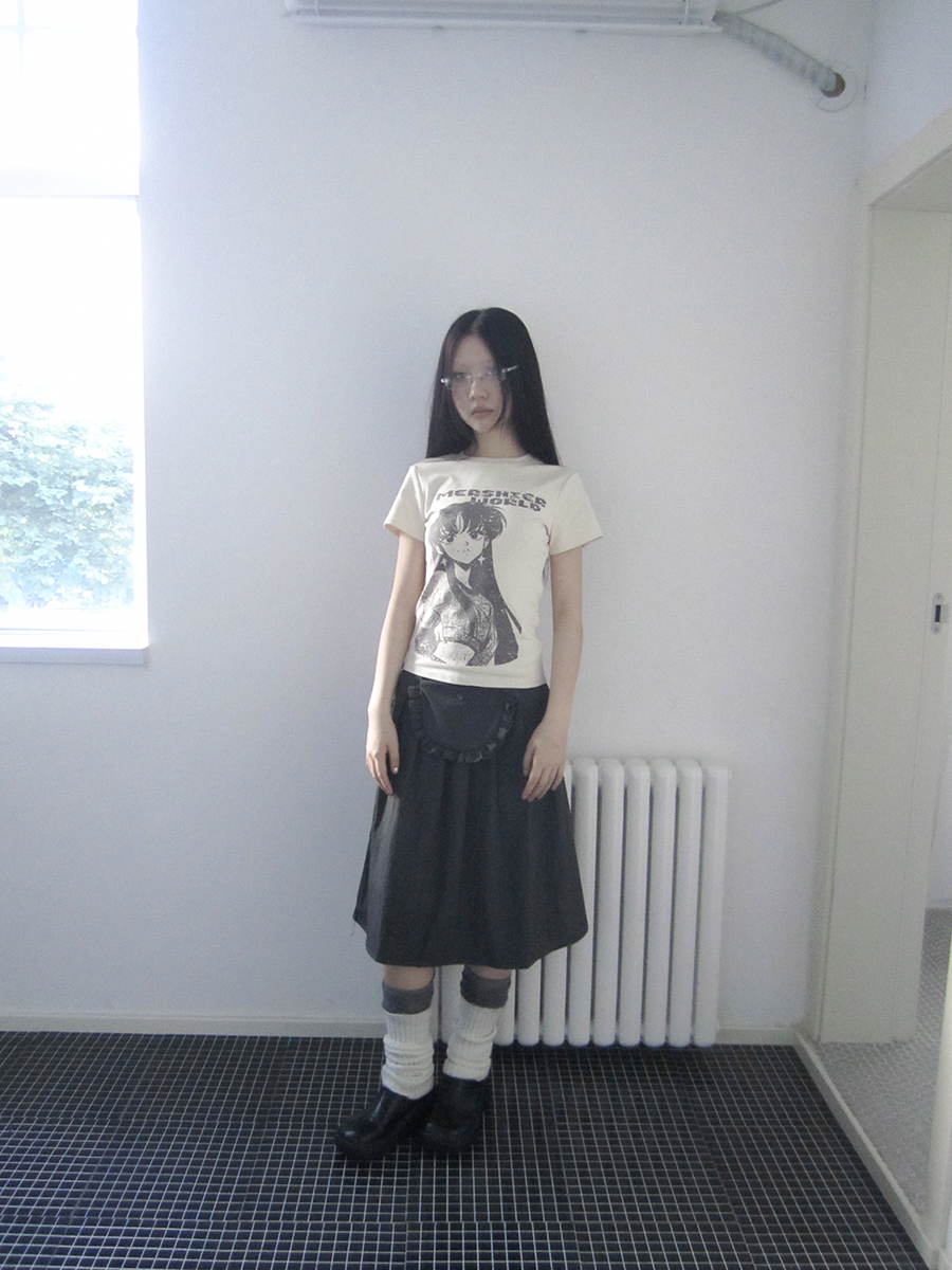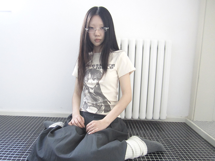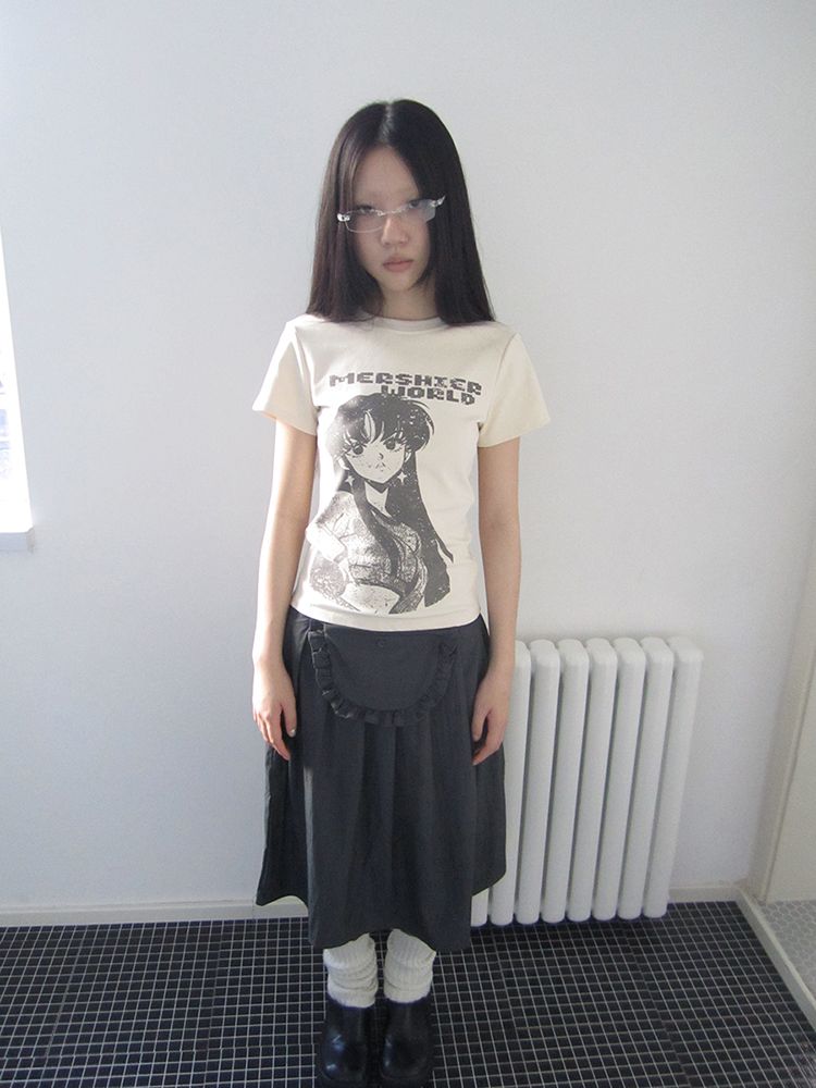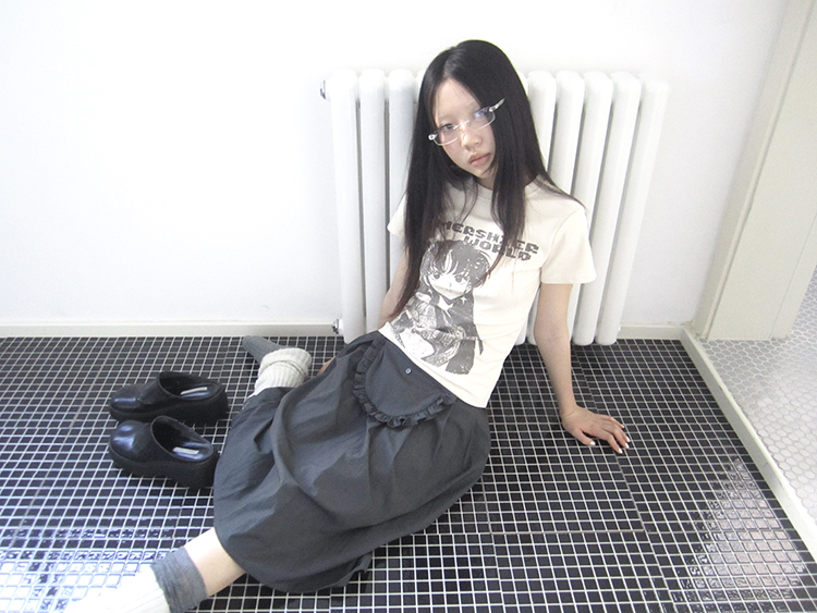 전면에 크게 들어간 프린팅이 티셔츠 하나만으로