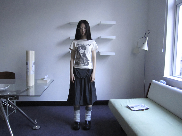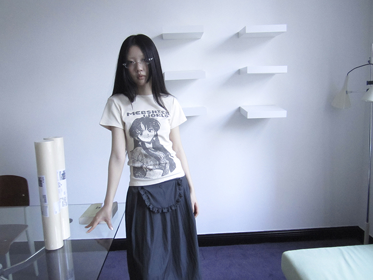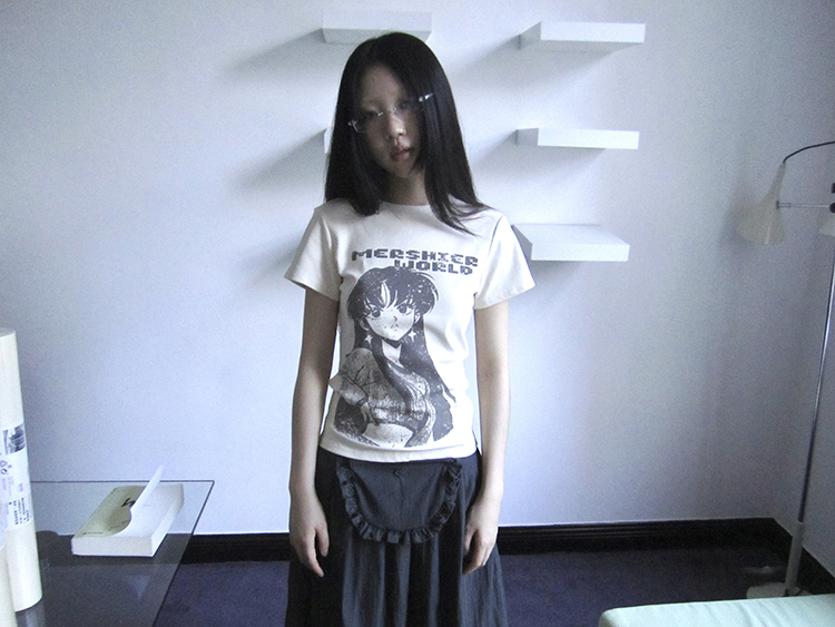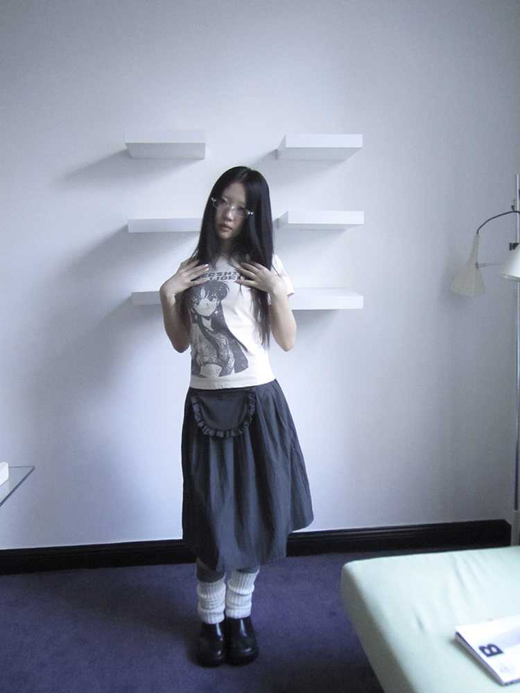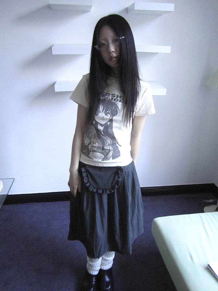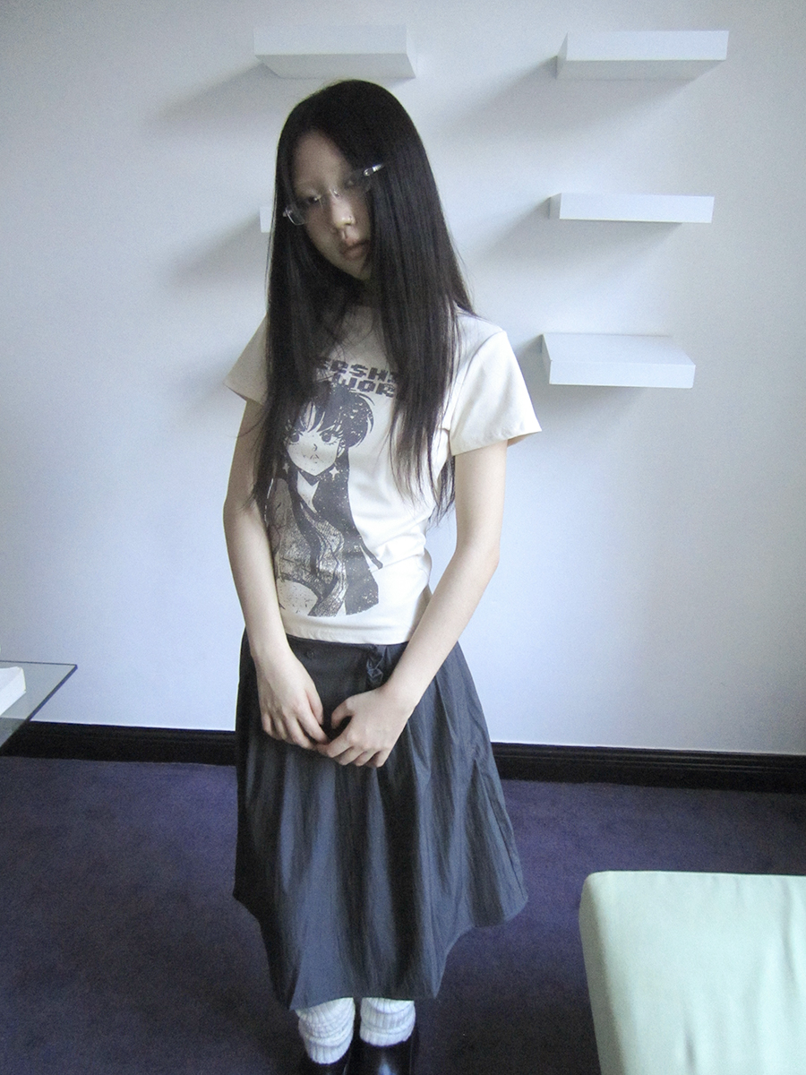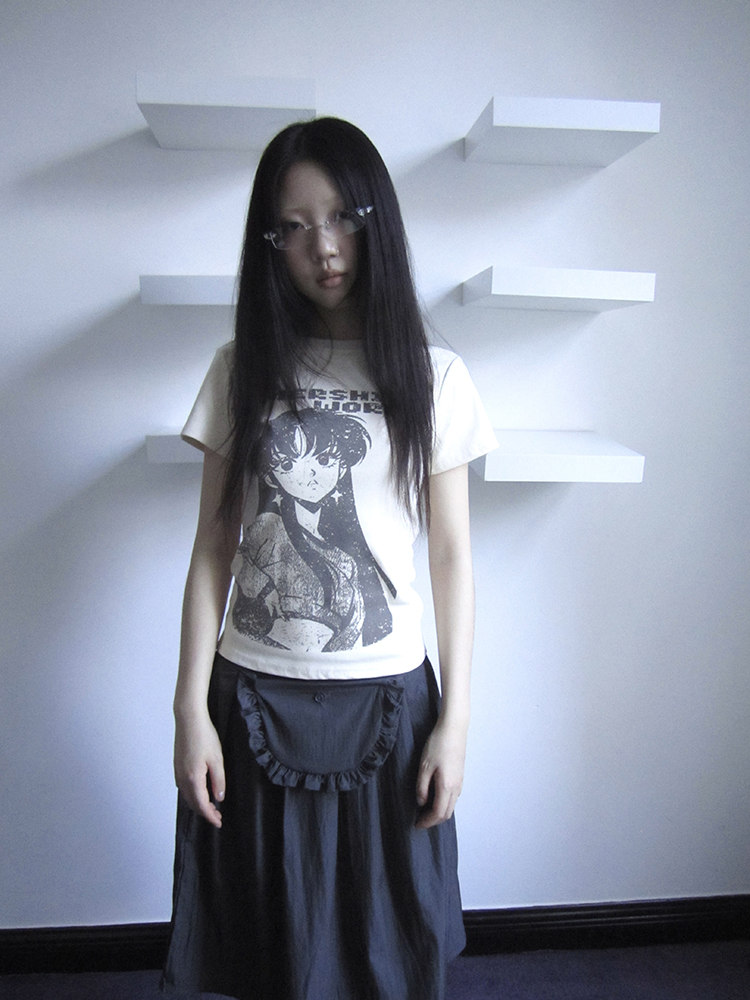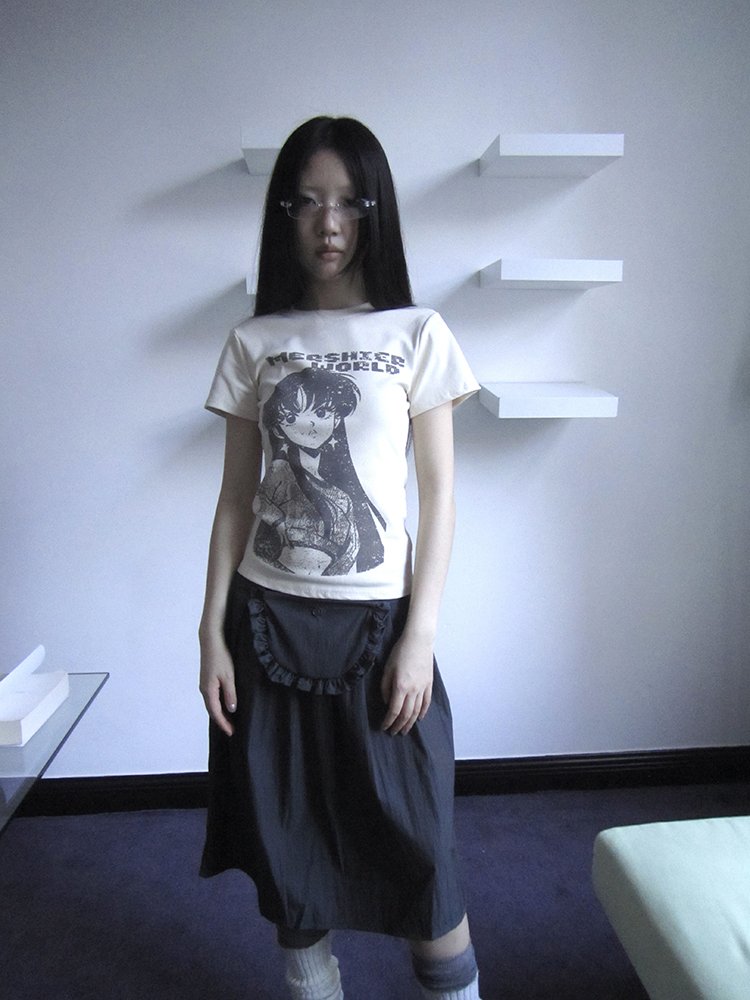 전면에 크게 들어간 프린팅이 티셔츠 하나만으로