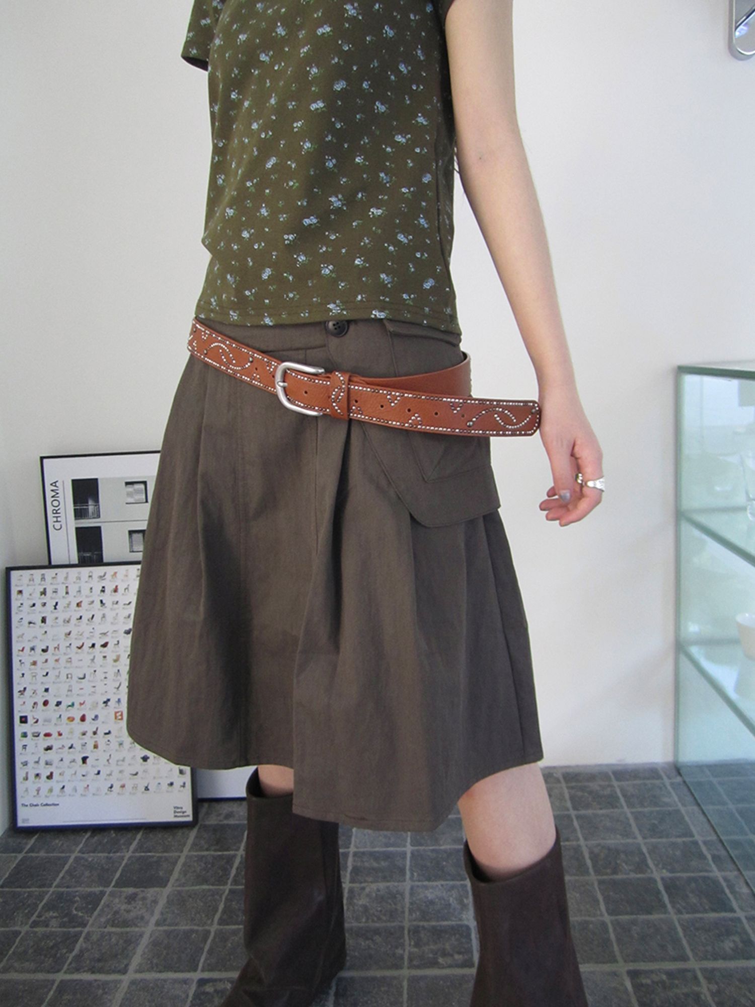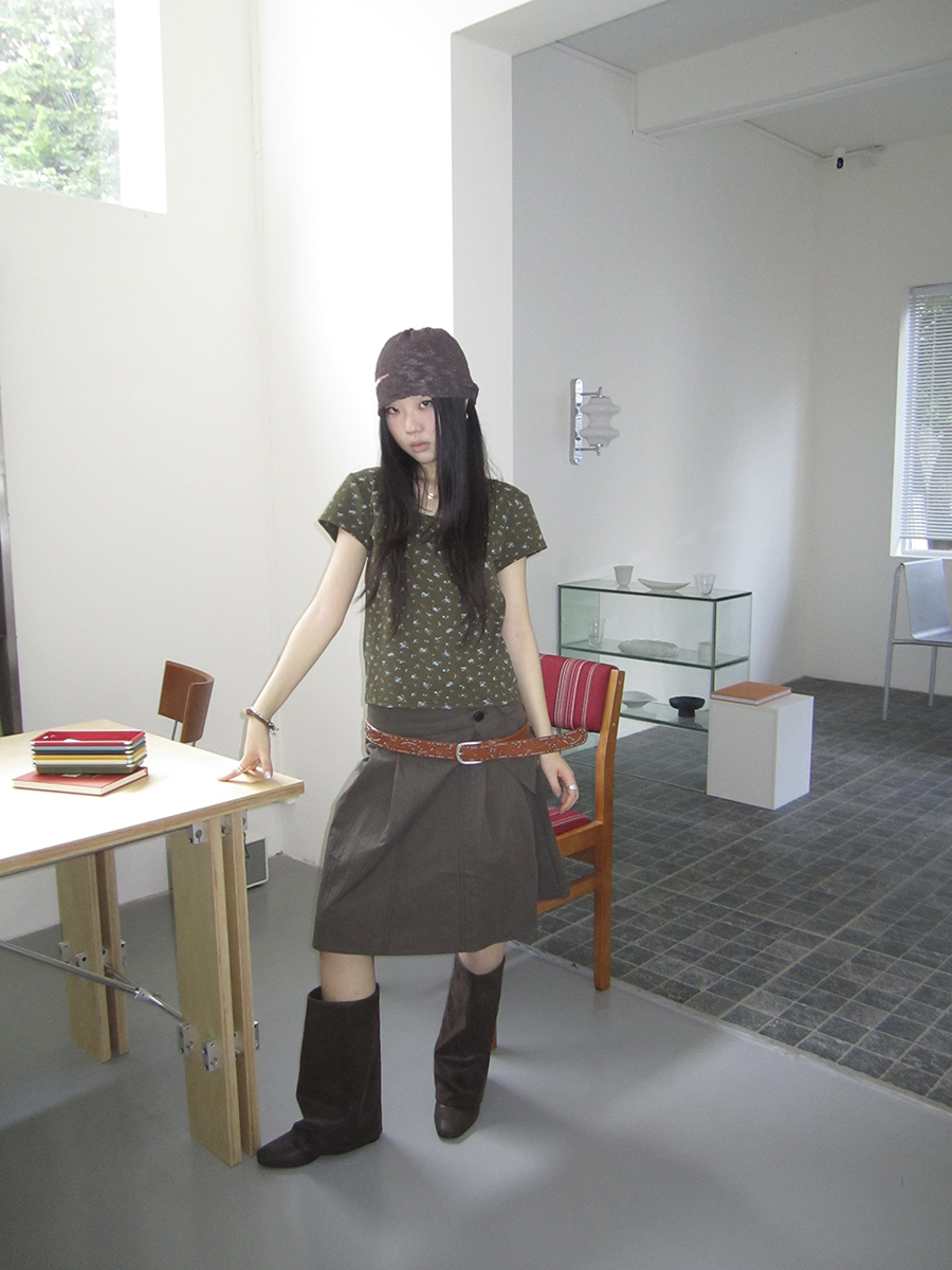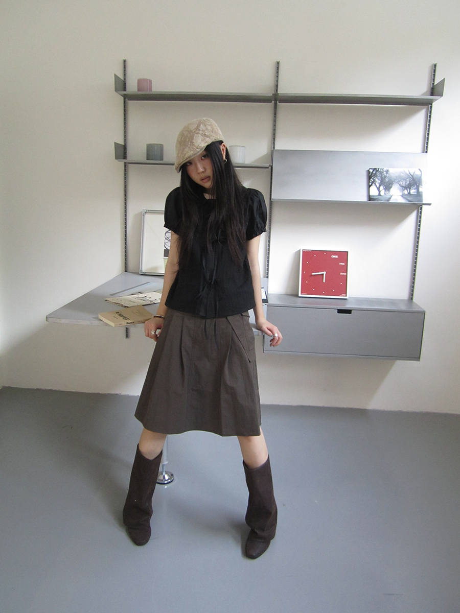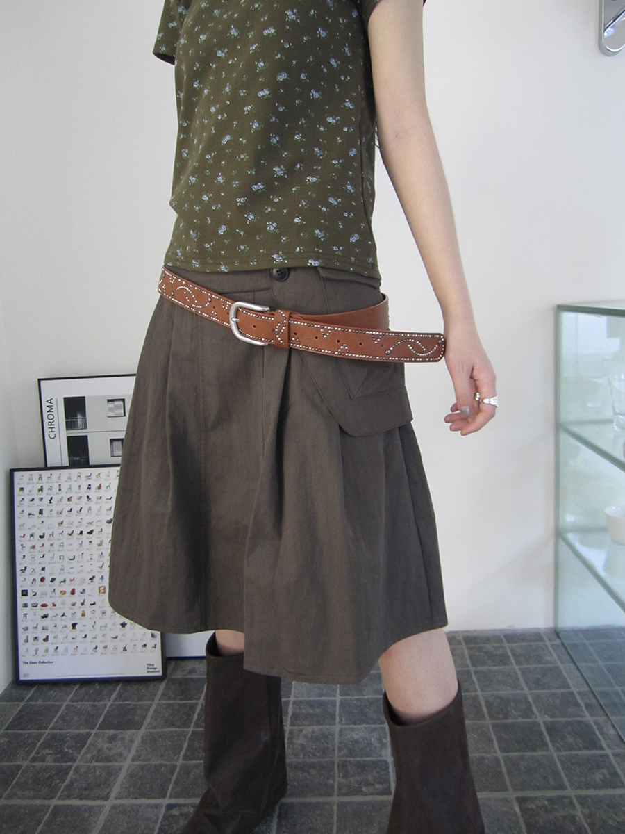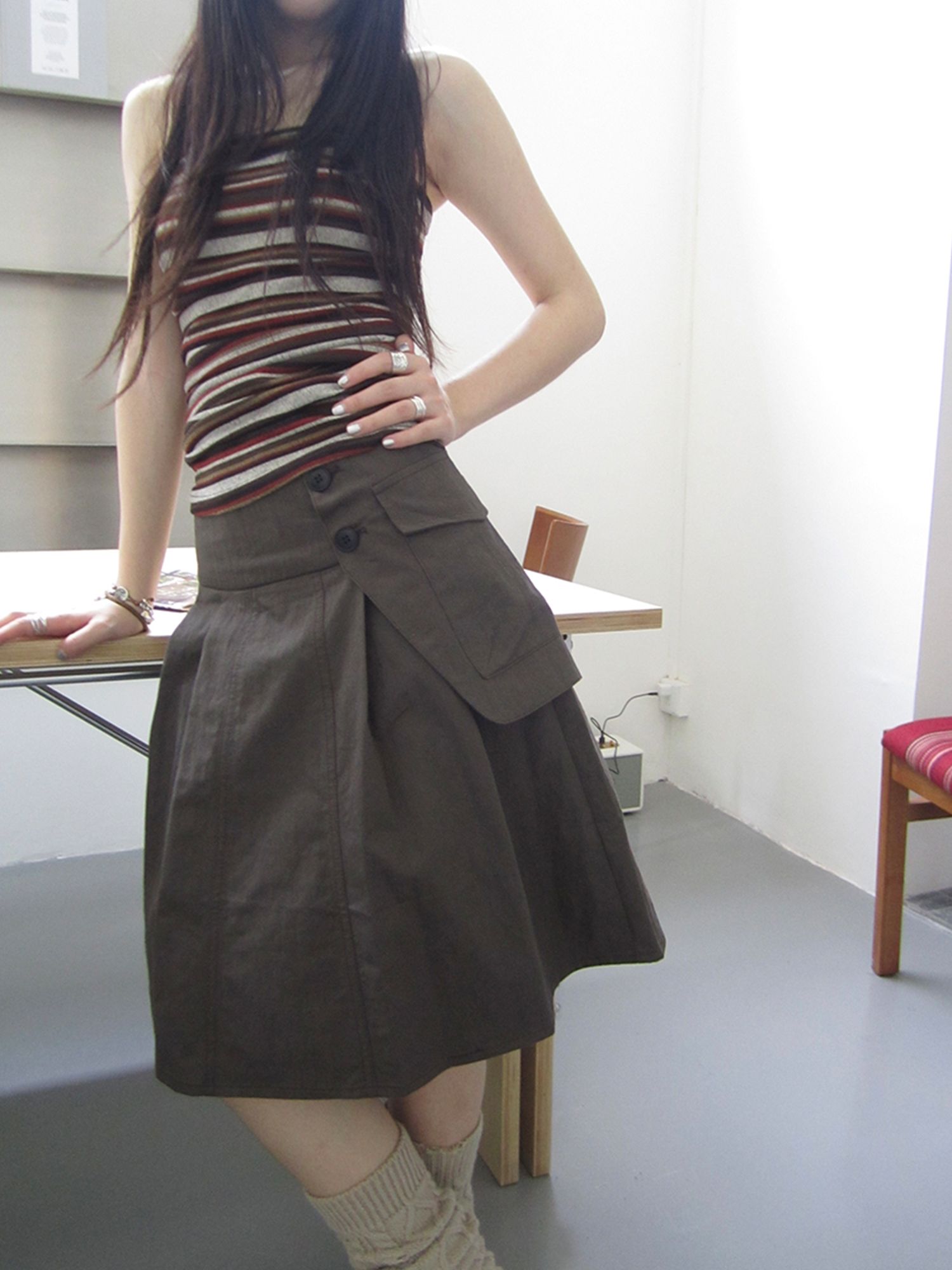 플랩 포켓 디테일로 유니크함을 더한 A라인 스커트입니다.
