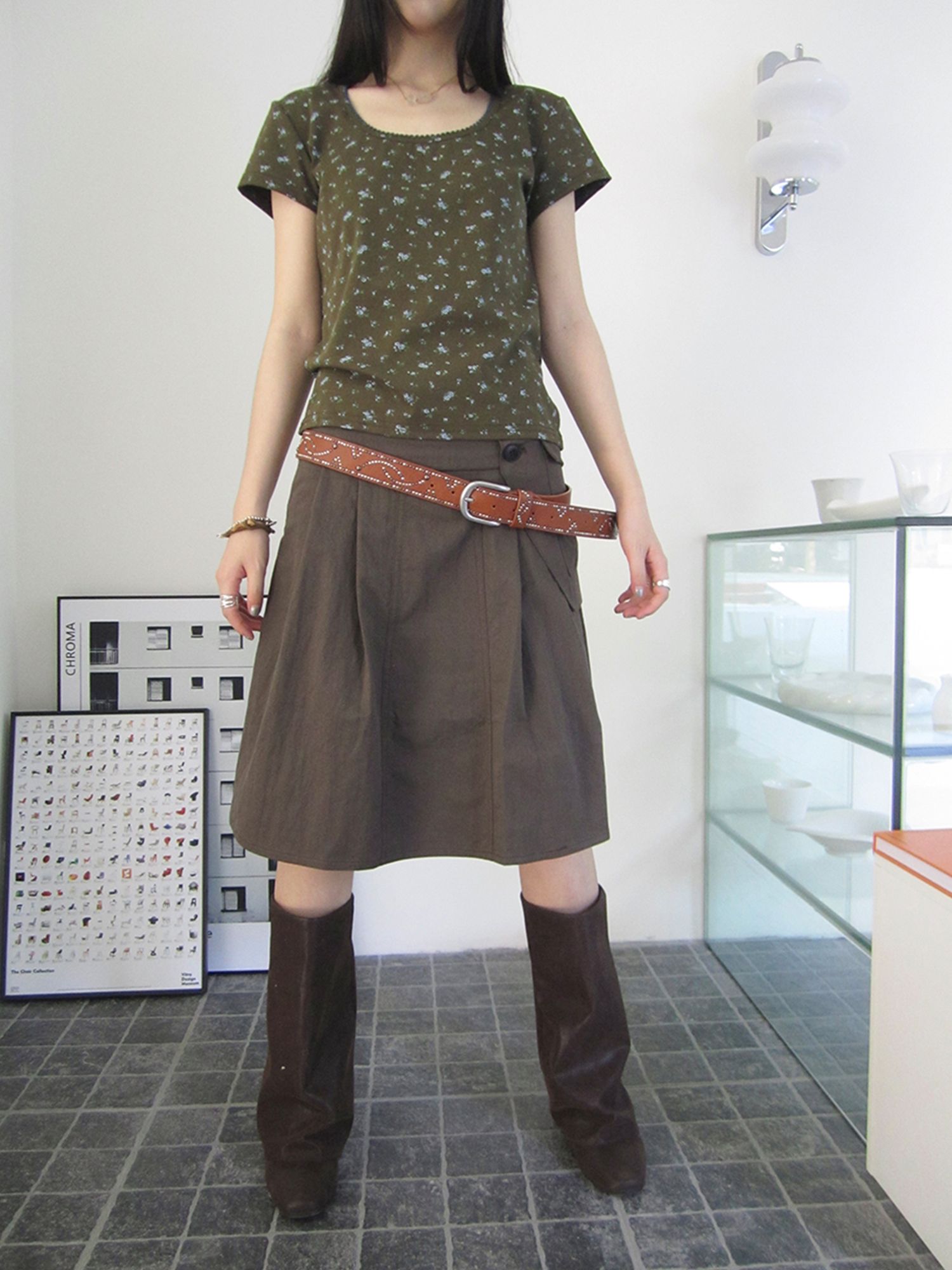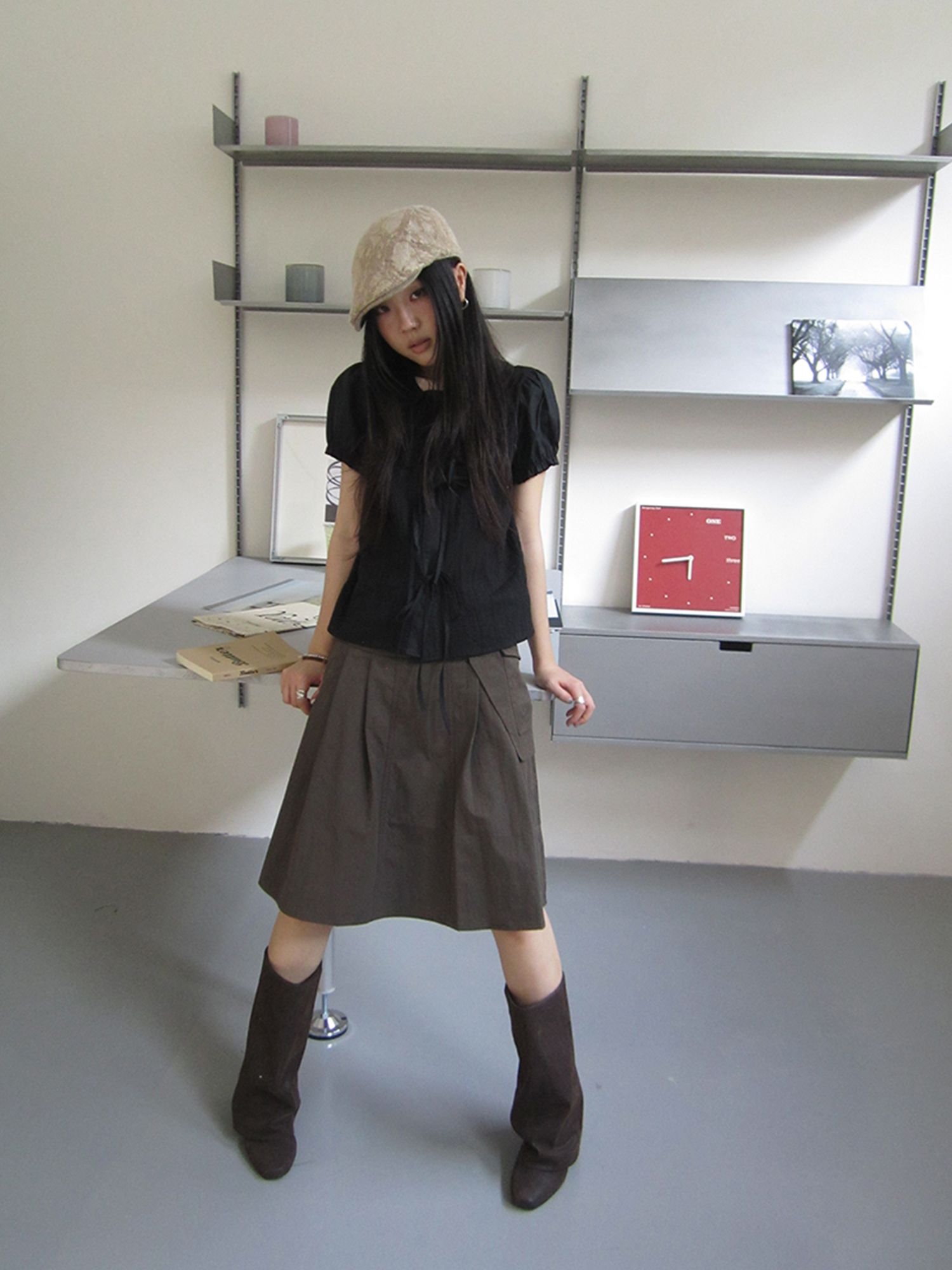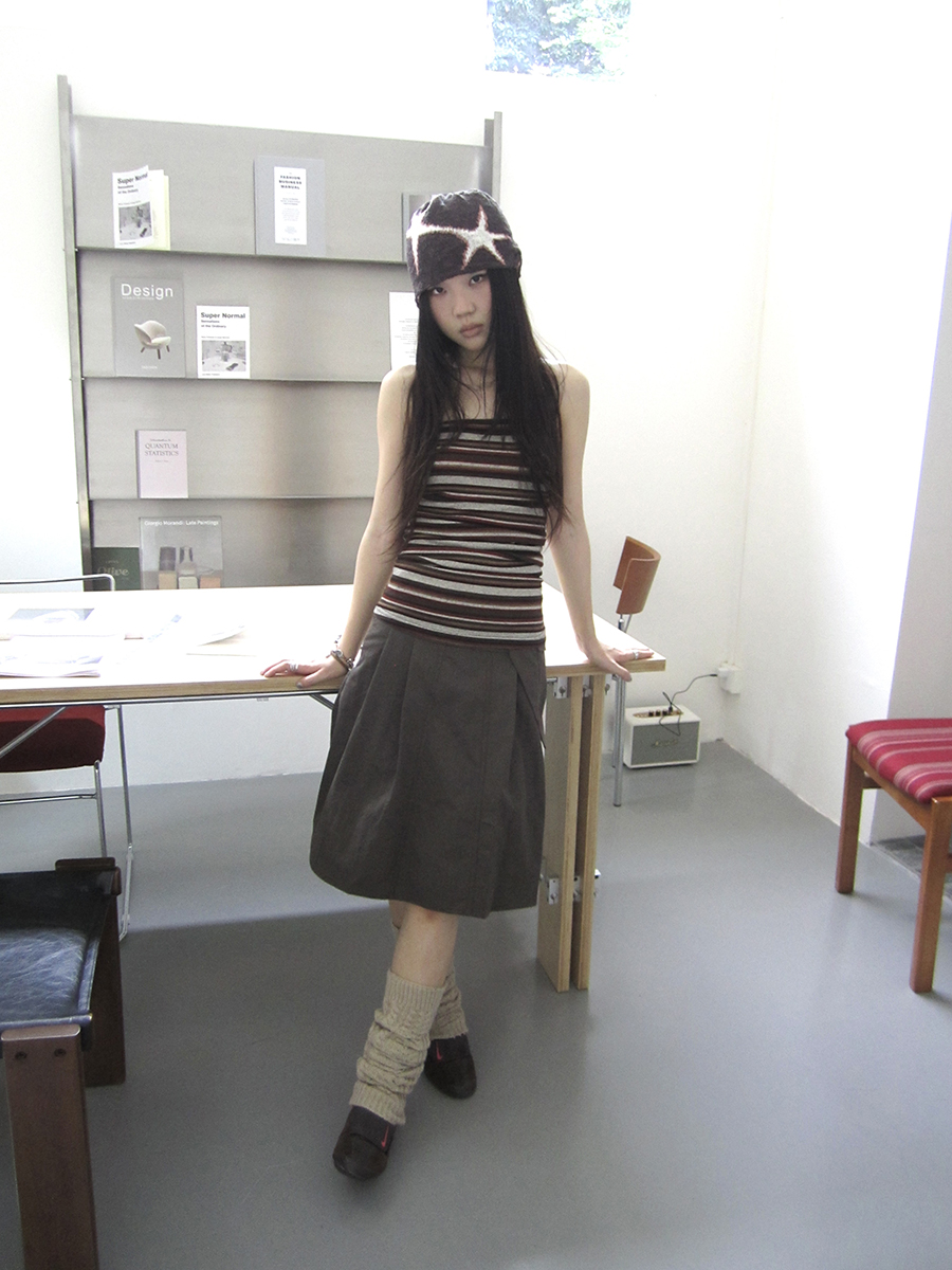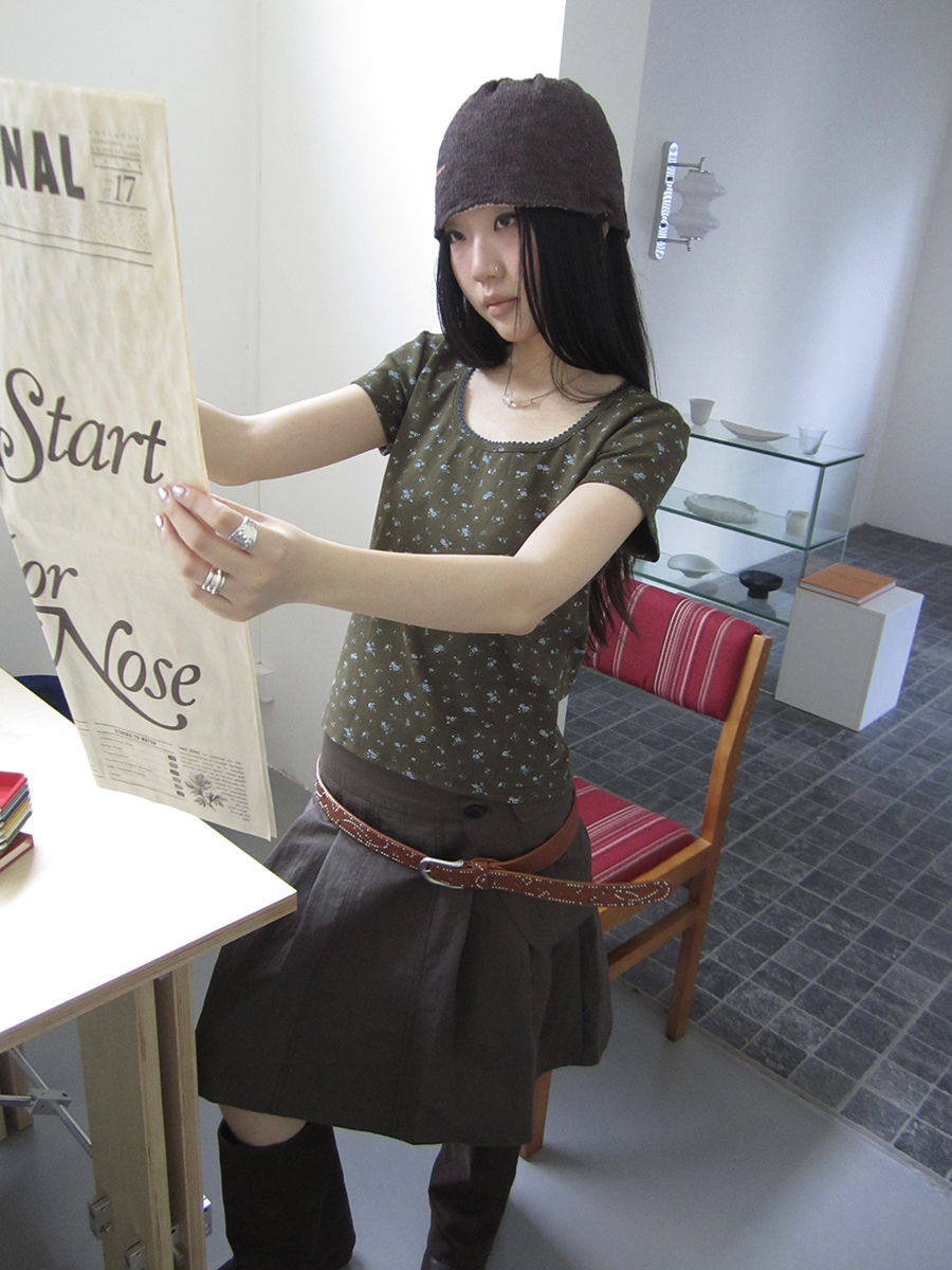 플랩 포켓 디테일로 유니크함을 더한 A라인 스커트입니다.