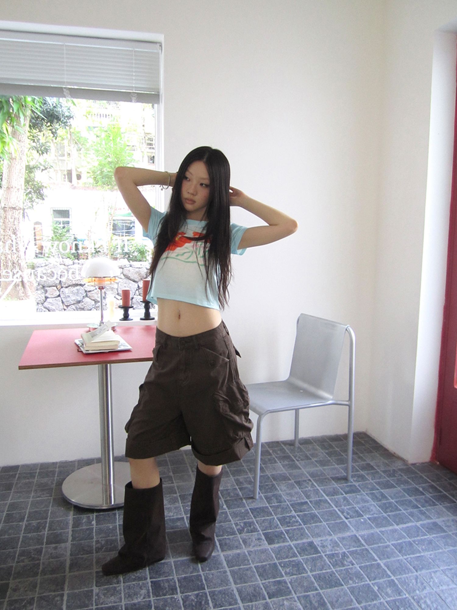 크롭 기장감과 슬림한 핏으로 러블리하면서도 쿨한 무드를 연출해줘요.
