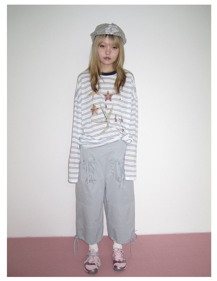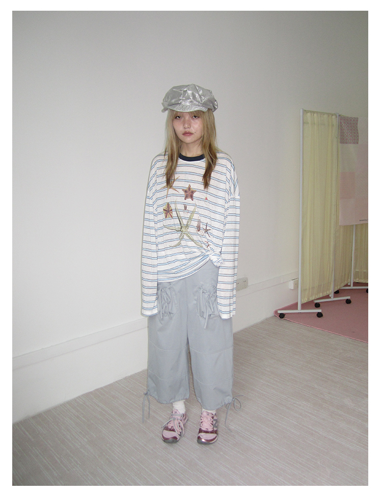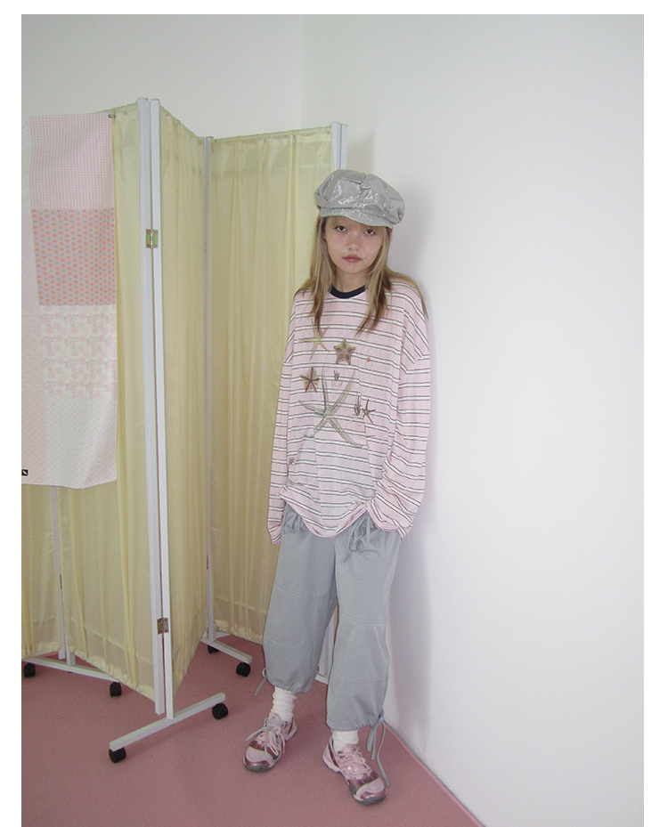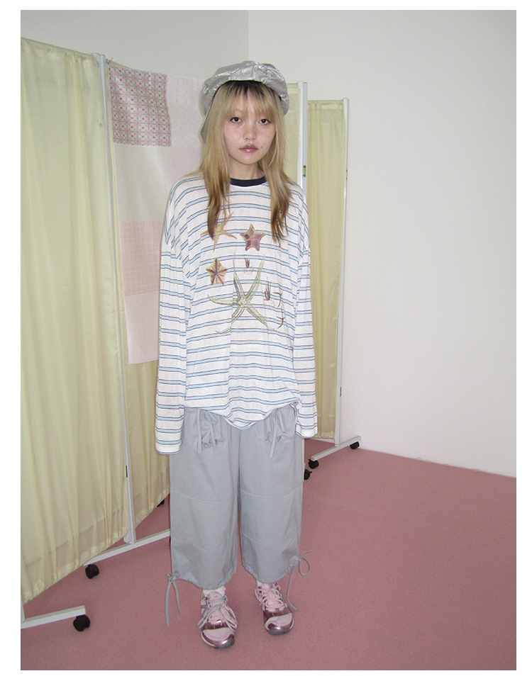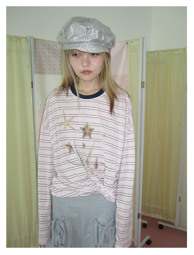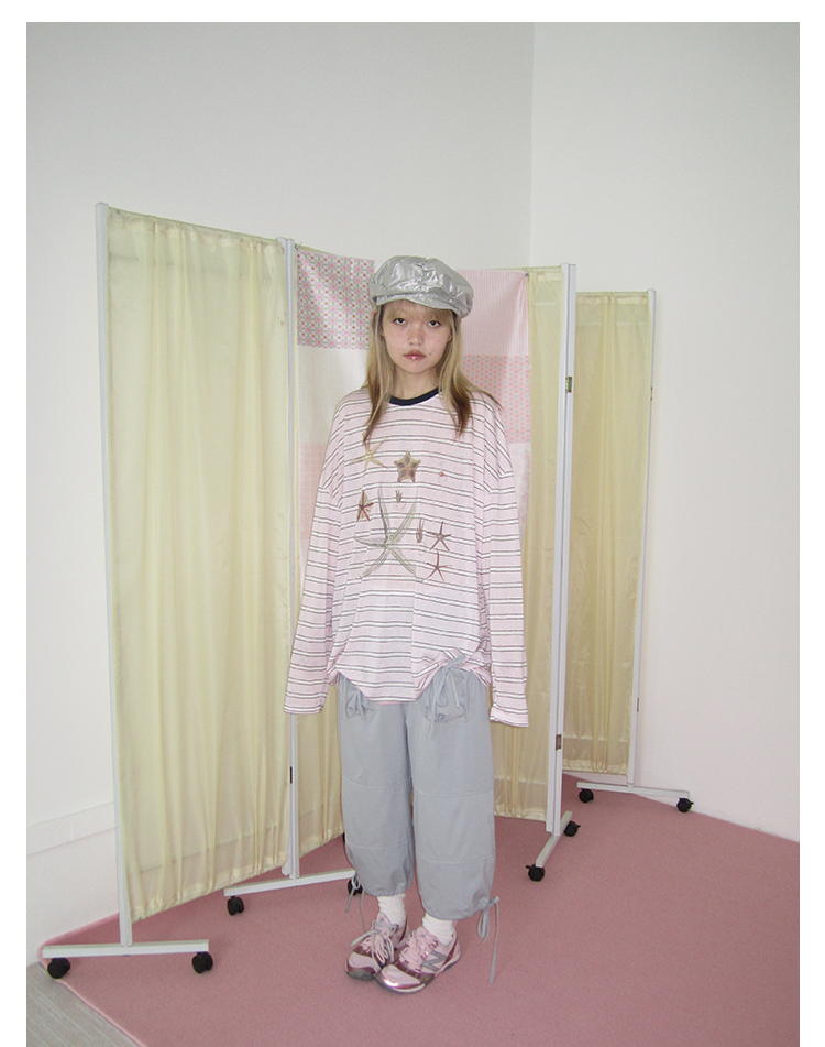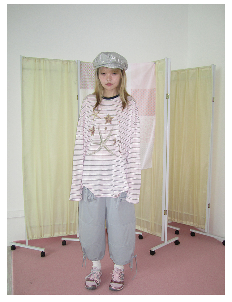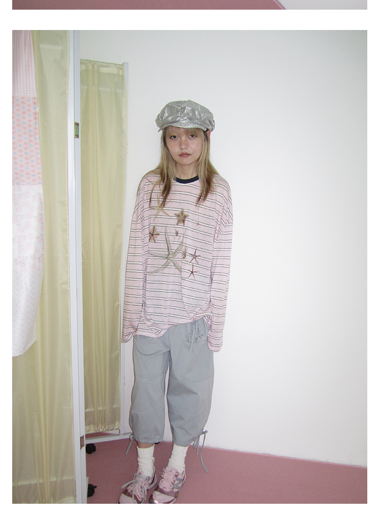 귀여운 바닷별이 총총 박힌 스트라이프 티셔츠입니다.